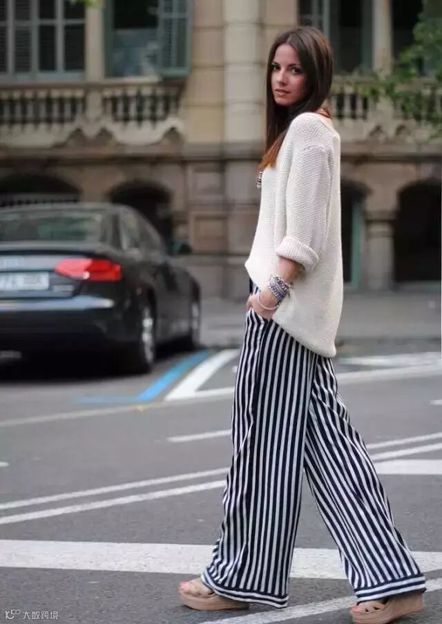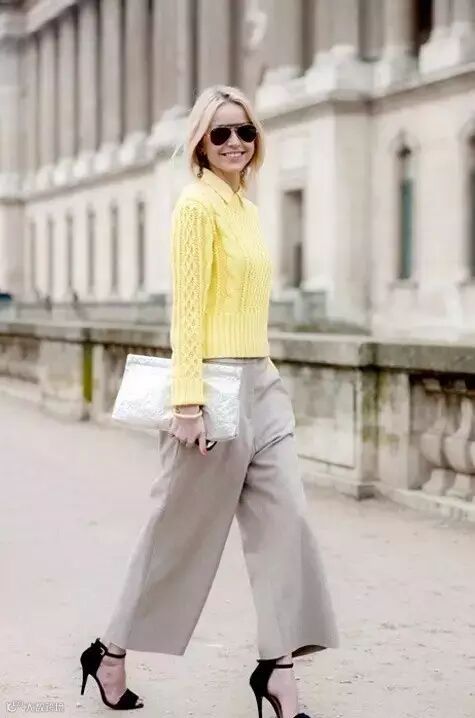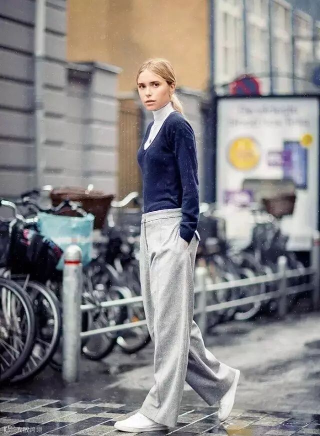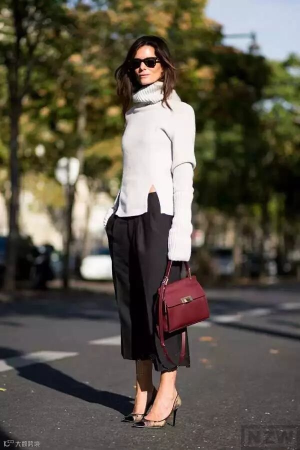 除了和衬衣组合,近两年潮人们都非常钟爱的一个搭配就是毛衣+阔腿裤。阔腿裤的好处Madam说过很多次啦,相信大家也都知道的。