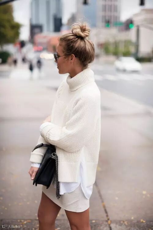 当然,不用我说大家也知道日常生活中白色的衬衣最百搭啦,搭配毛衣也是如此。无论你毛衣是什么颜色都可以轻松配对。