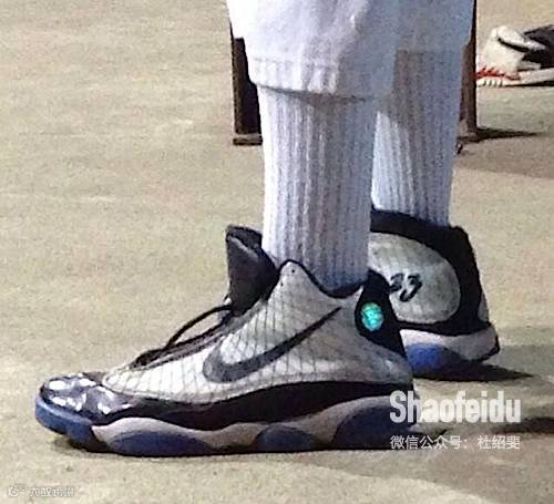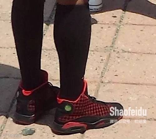 Air Jordan13代的鞋身,加上Air Jordan 6代的鞋底,这个黑丝少年,踮起脚尖就扣篮: