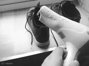 如果一定要马上穿你的潮鞋去泡妞,用风筒吹风也是一个不错的办法,但要注意温度不要超过六十度。否则,你的宝贝鞋可能会鞋面和鞋底分家。