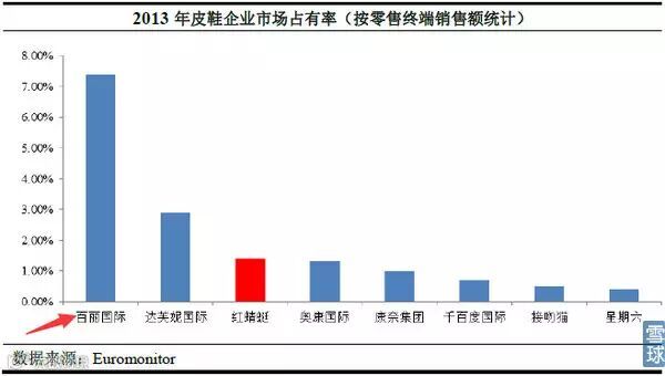 引用红蜻蜓招股说明书中的数据,百丽的市场占有率为第一,但比例只有不到8%,并没有想象的高。