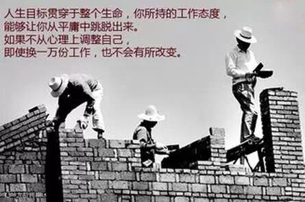 三个工人在砌一堵墙。有人过来问:“你们在干什么?”第一个人没好气地说:“没看见吗?砌墙。”第二个人抬头笑了笑,说:“我们在盖一幢高楼。”第三个人边干边哼着歌曲,他的笑容很灿烂开心:“我们正在建设一个新城市。”10年后,第一个人在另一个工地上砌墙;第二个人坐在办公室中画图纸,他成了工程师;第三个人呢,是前两个人的老板。