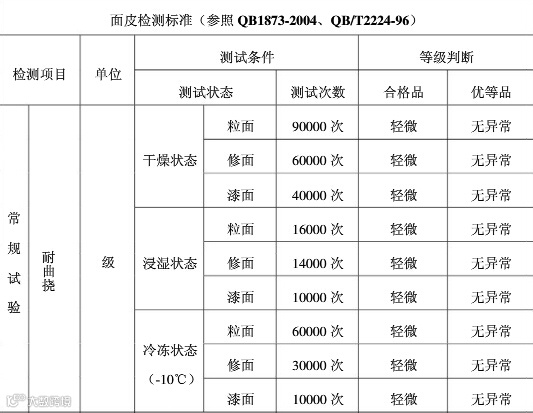 ③皮面牢度:双向对折,在粗布上磨擦及对折加压不能掉漆、炸面