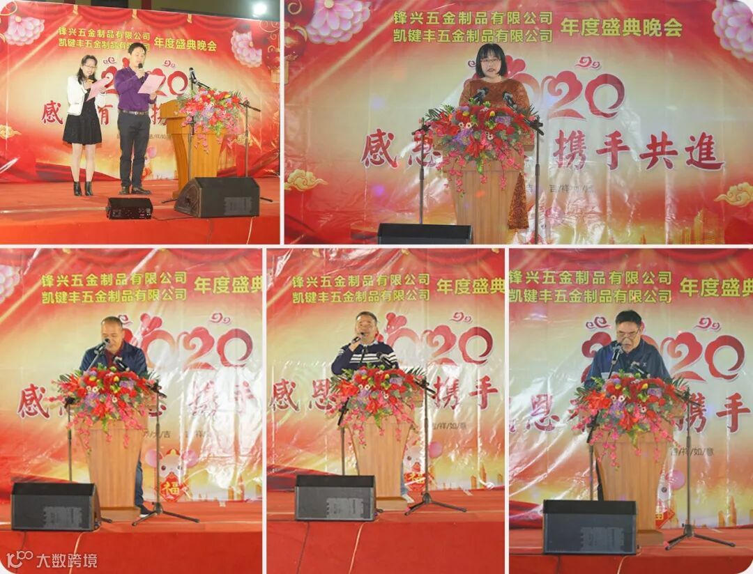 感谢各位家人们的辛勤付出,感谢各位供应商的支持与配合,感谢各位客户的信任与合作,今晚很高兴大家能来参加锋兴公司及凯键丰电镀厂的年会。在过去的一年里,在各位家人们的努力下,锋兴公司取得了新的突破,公司规模得到壮大。2020我们大家同心协力,创造更好的锋兴家园。