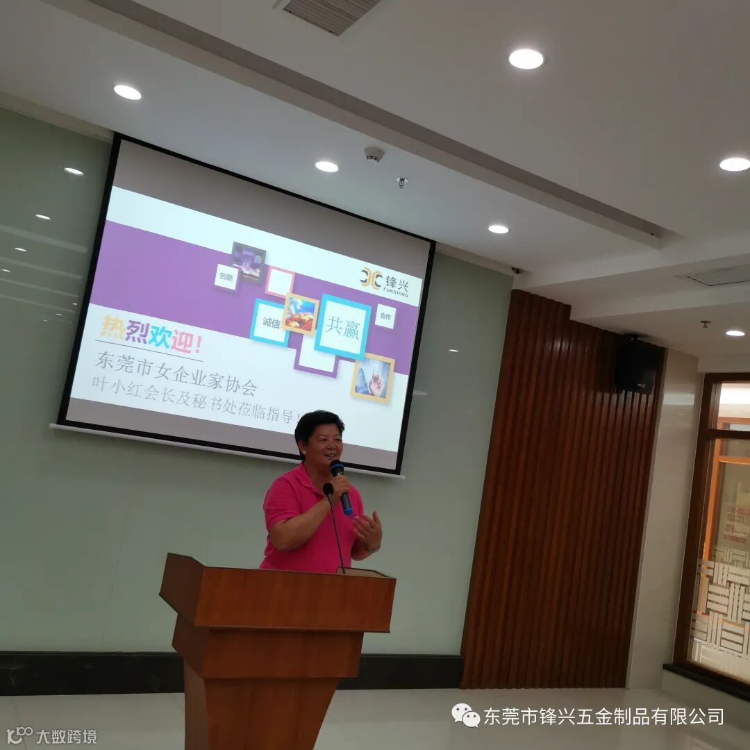 活动中,主持人宣布活动正式开始,播放我司宣传片,并简要介绍我司的生产流程和工艺。紧接着,我司董事长陈福梅女士致欢迎词,介绍石排女企业家协会并讲述创业历程和企业的经营情况。