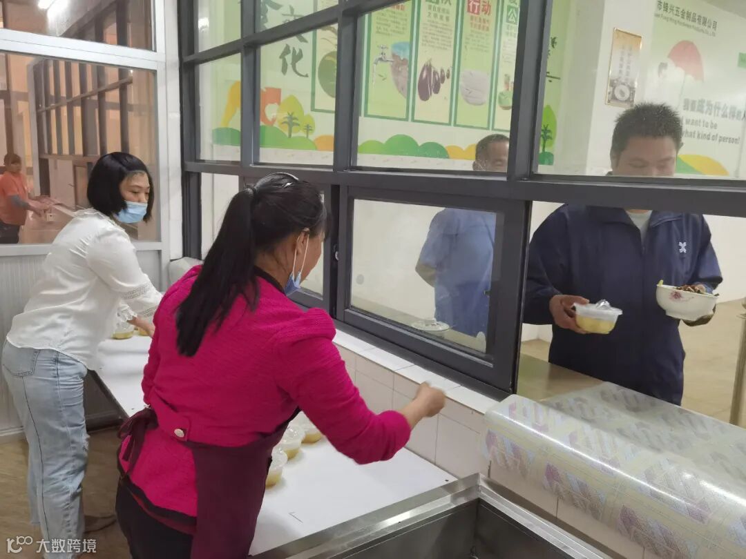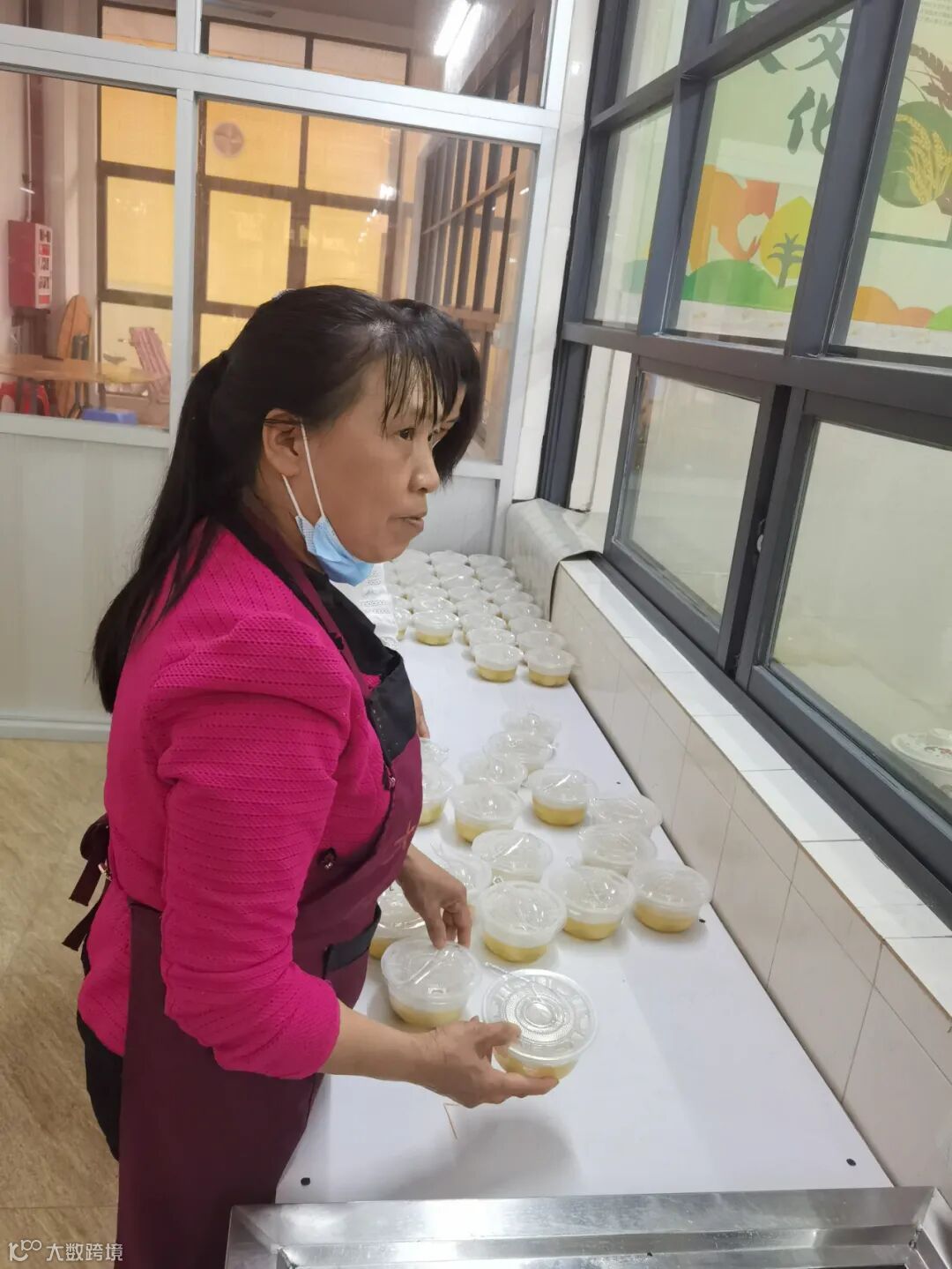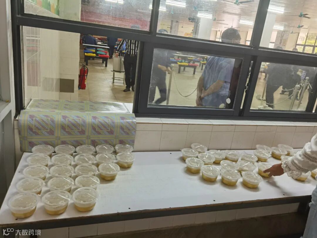 午饭时,饭堂阿姨们都忙着给家人们分发汤圆 。