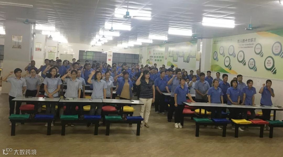 全体家人们一起朗诵锋兴五金的企业文化。