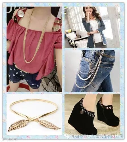 Other usage of chains:Necklace, garment decorations,belt,shoes decorations and so on(链条其他用途, 如:项链,服装鞋饰辅料,腰带等)