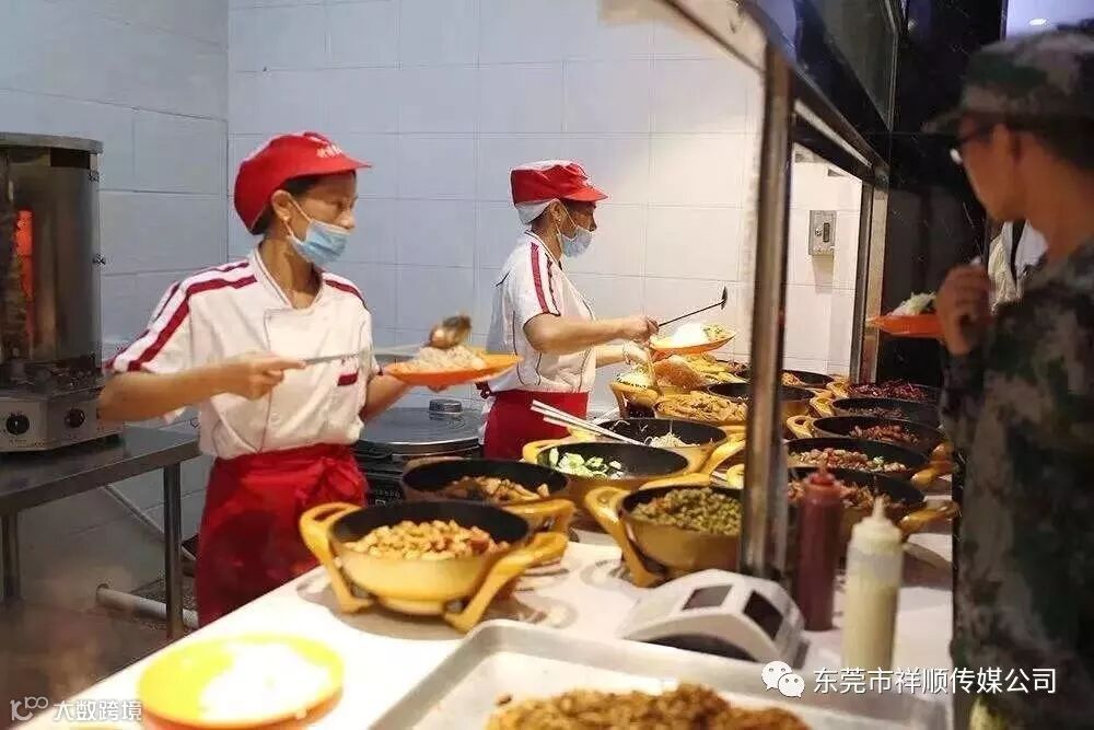 挤满人排队打饭或就餐的区域,