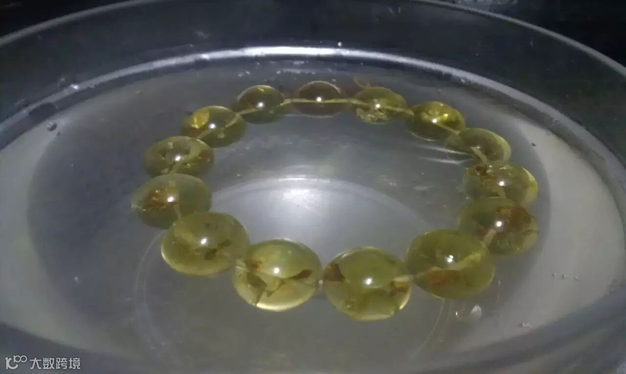我们知道,天然琥珀的质地较轻,如果把它(无镶嵌的情况下)放入清水中,它会沉入水底。不过有趣的是,若你在水中加盐直至饱和。这时真的琥珀就会慢慢的浮上来,而假的琥珀则不会浮起来。