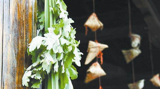 在端午节布置种种可驱邪祛病的花草,来源亦久。蓬莱人把插艾草和桃枝作为端午节重要内容之一。