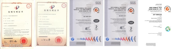 东莞市伟思化学科技有限公司部分证书