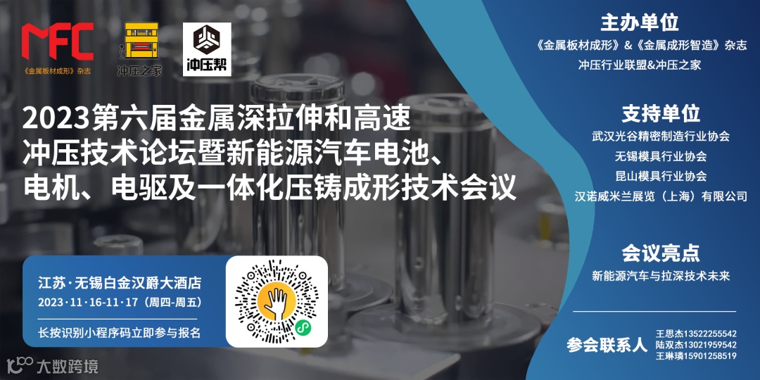 2023年11月16-17日,第六届金属深拉伸和高速冲压技术论坛暨新能源汽车电池、电机、电驱及一体化压铸成形技术会在江苏无锡成功举办。