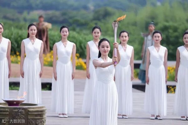 6月15日,杭州亚运会火种在杭州良渚古城遗址公园大莫角山成功采集。身着典雅白色服饰的采火使者手持采火棒走向玉璧造型的采火装置,通过凹面镜聚光采火,成功点燃亚运火种。这一刻,青春靓丽的采火使者成为了焦点,她们的服饰也惊艳了全世界。