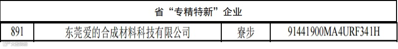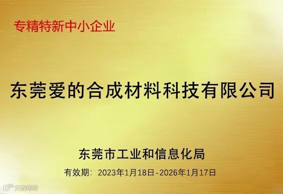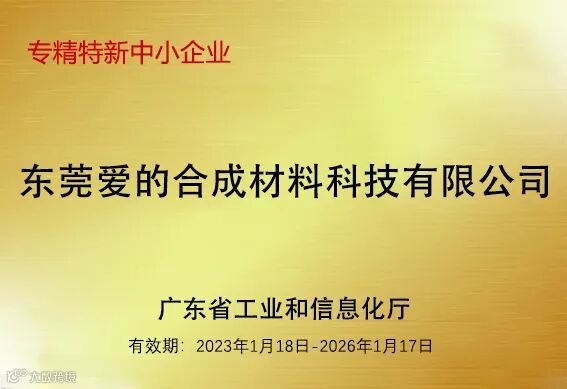 东莞爱的合成材料科技有限公司(简称:爱的科技)以国家专精特新“小巨人”企业称号被列入“倍增计划”试点企业,并获得相关政策扶持。