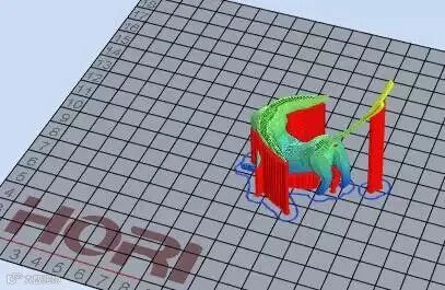 其实大部分模型添加支撑时都采用自动添加,在设置好支撑各项参数后进行分层切片,就可以看到添加支撑的效果了。