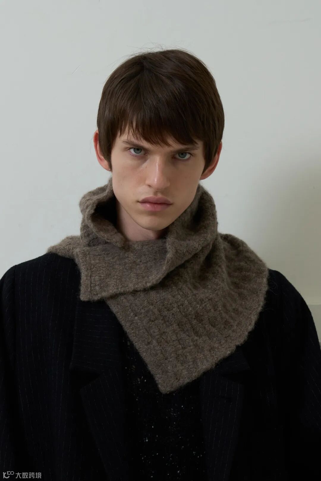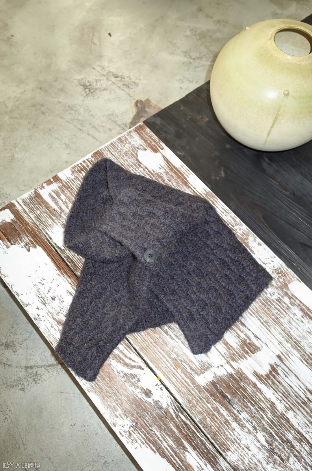 这几款纱线的特性各不相同,比如说坎力 ECO 是牦牛绒,我看中的是牦牛绒自带的亲肤与天然的质感,我用它做了新系列的这款牦牛绒围巾。再比如说游牧光斑+的效果,在我眼中很像土壤沉积的层理与颗粒质感,我用它做了绞花毛衣,放大了纱线,或者说材料本身的“沉积感”。