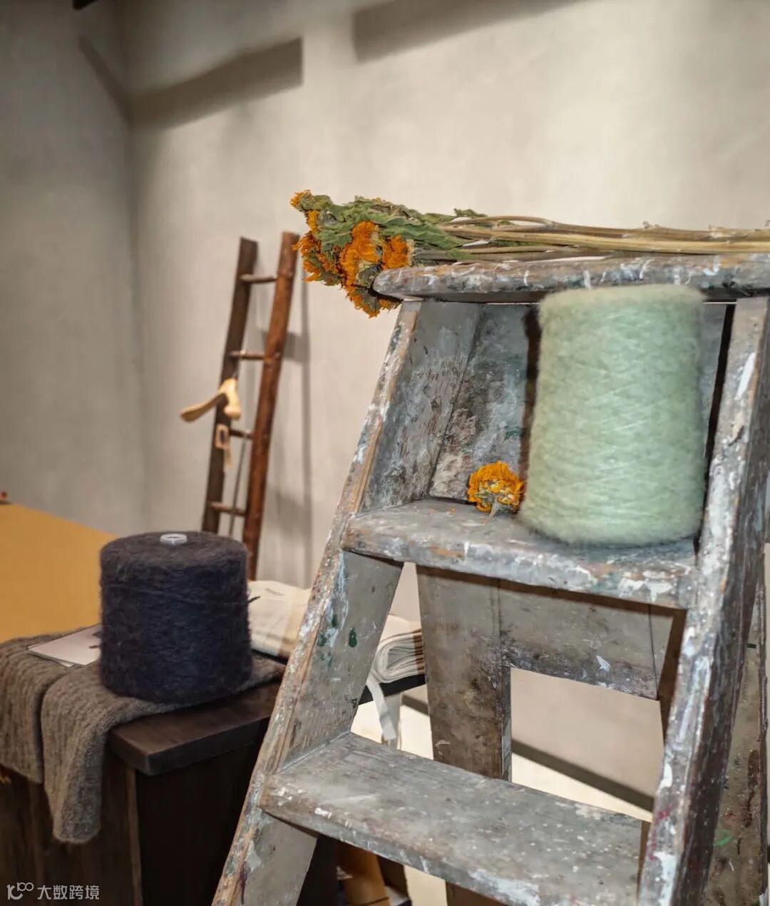 Jing:这次展示我们使用了各种不同质感的中古家具,木梯,木柜,木板,木凳,不同年代,不同材质颜色的木材结合在一起营造出一种天然的氛围。是我们想为这个空间以及到来的顾客呈现的感觉。