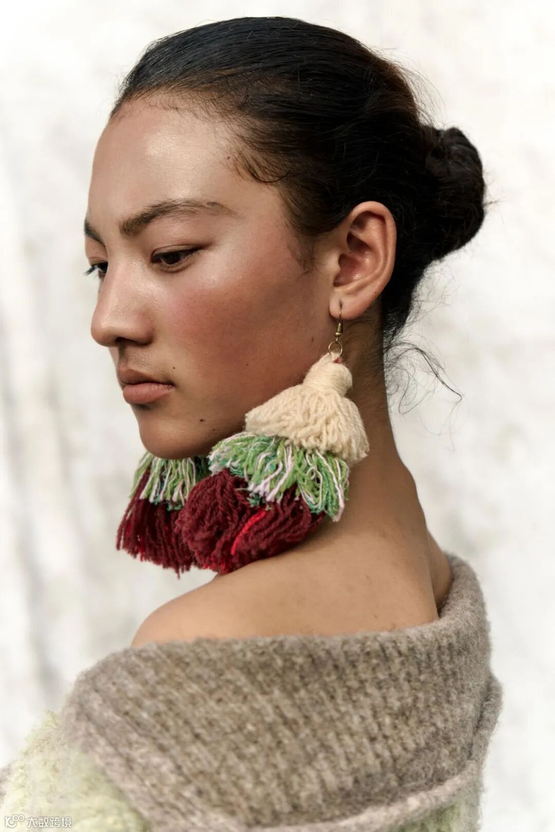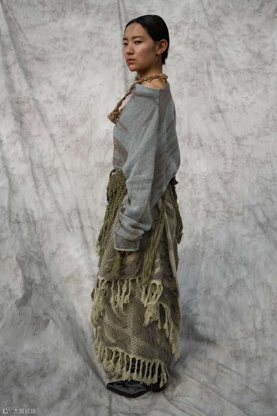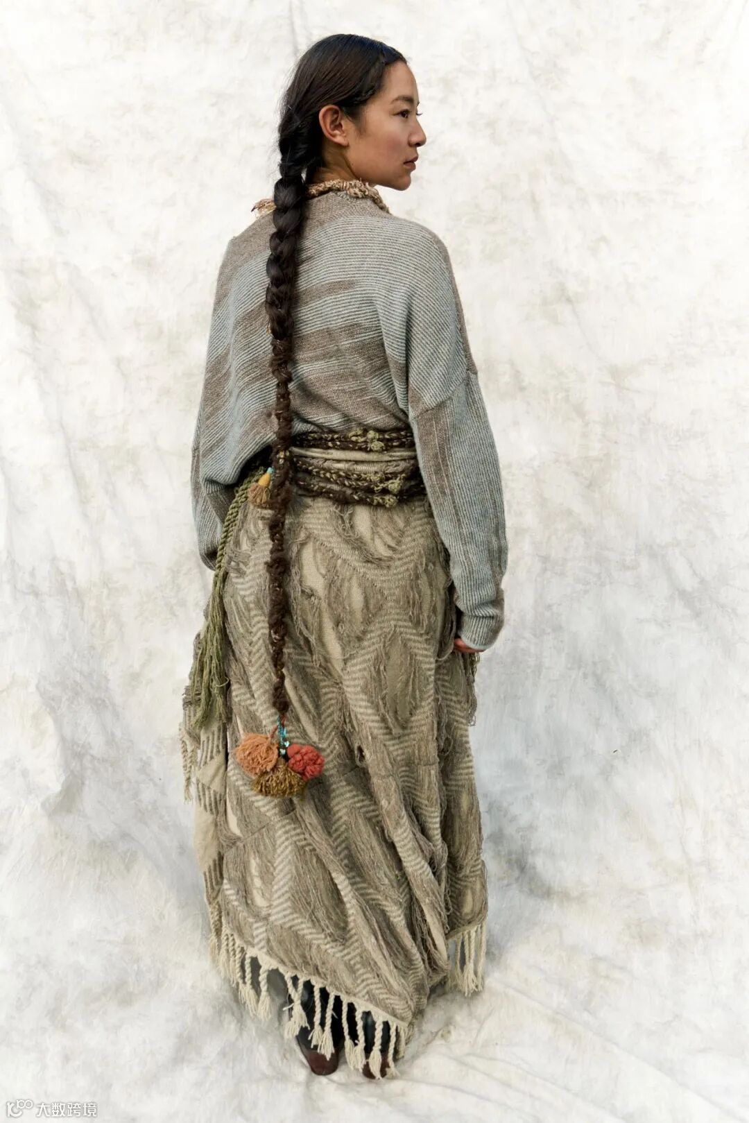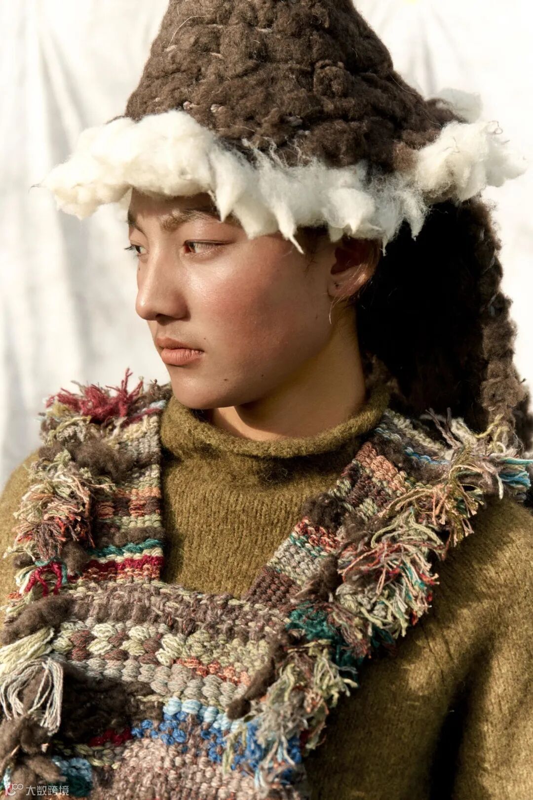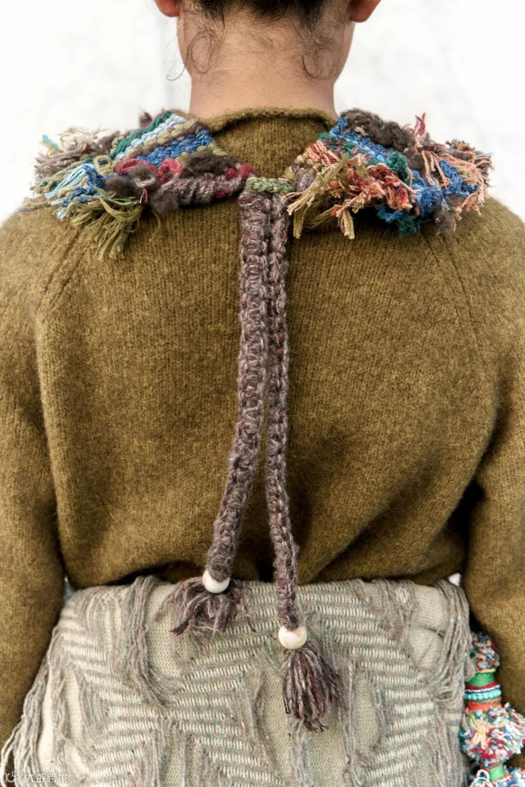 在开发和纺纱过程中产生的不可避免的废料,我们收集整理后经过整烫工艺,制作成《雪域织信》的配饰系列,尽可能利用这些"藏地黄金"的每一寸纤维。