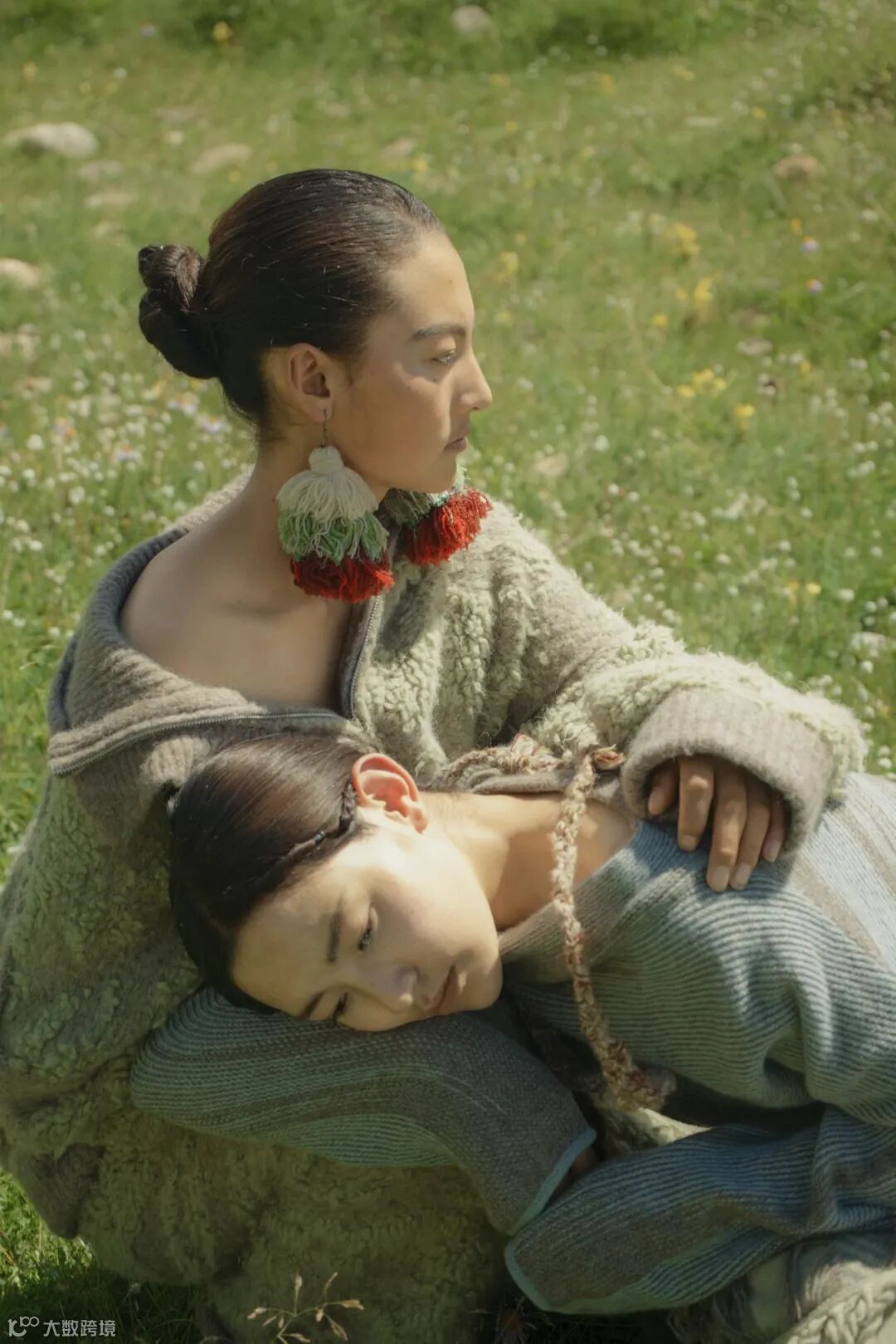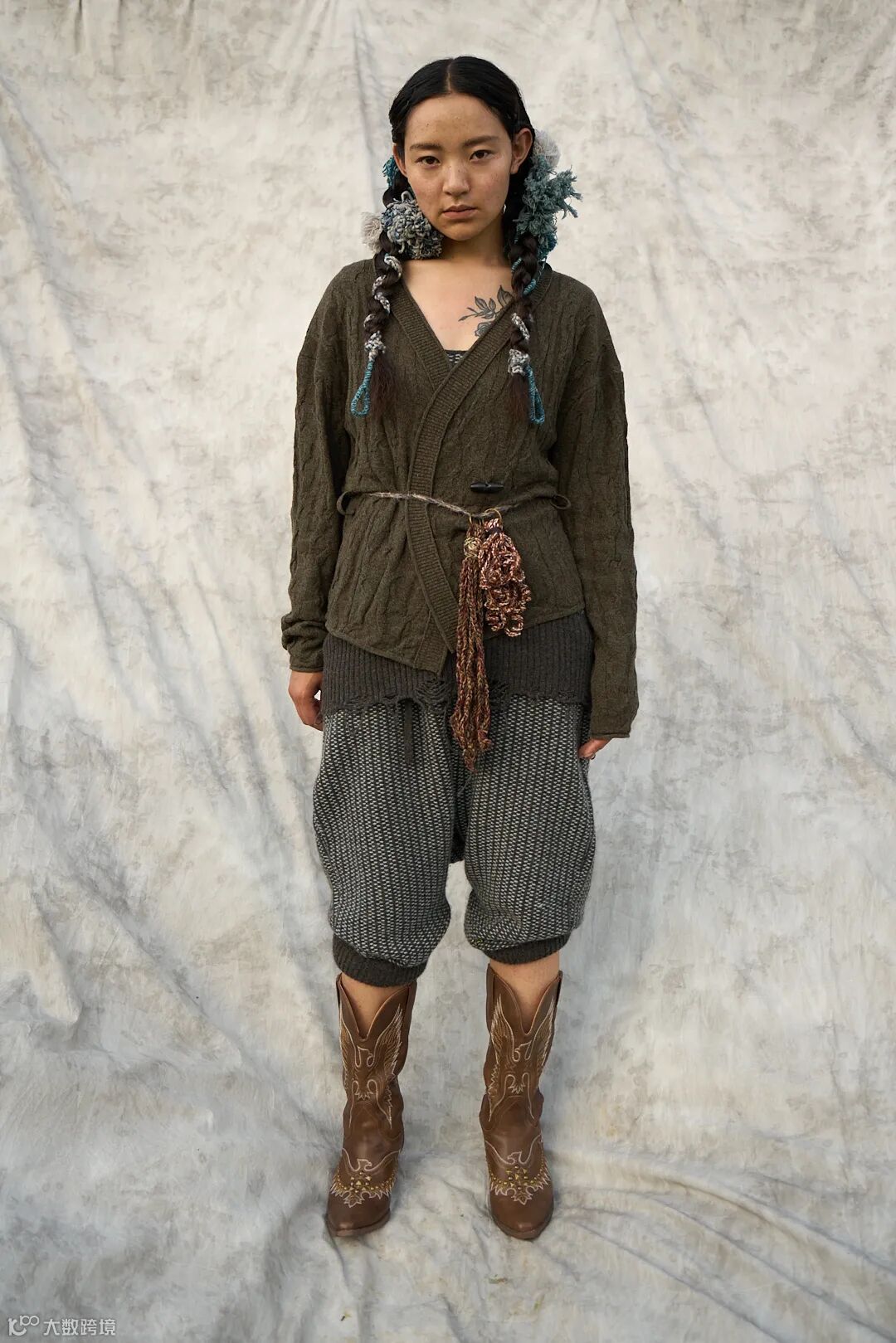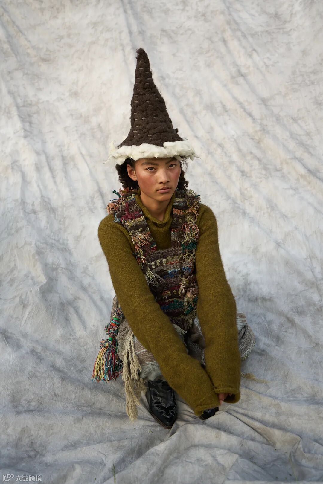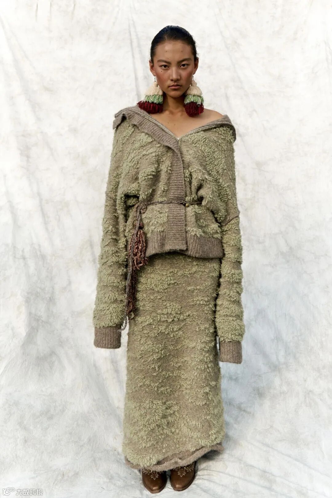 我们用毛织来承载这份信念,将玉树的自然与人文意象转化为设计语言:画出玛尼堆、草原、河流与牦牛做针织图案,解构藏袍与披挂做廓形,创作出这个致敬土地与人的针织系列。