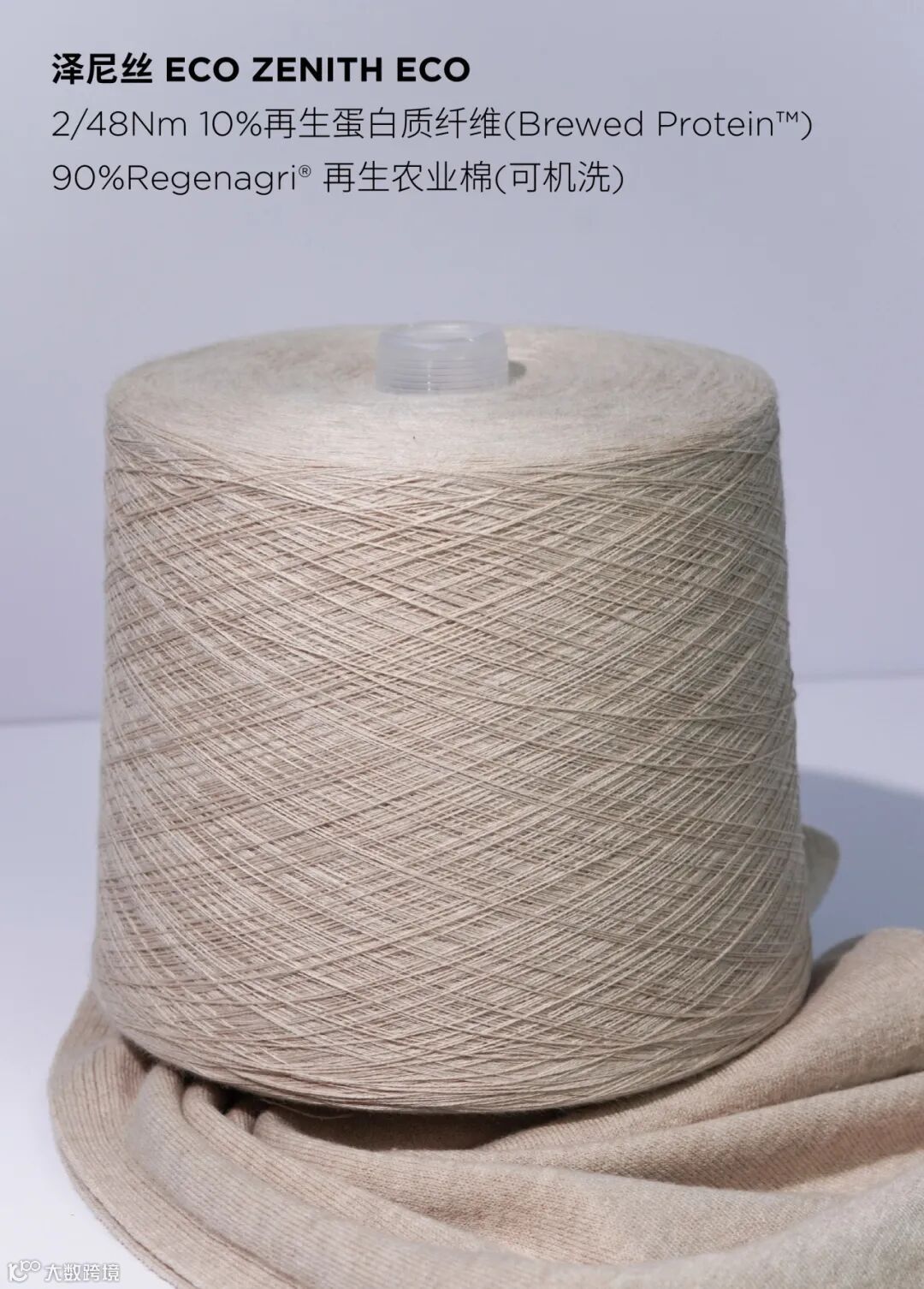 泽尼丝 ECO 是由90% Regenagri® 再生农业 棉与 10% Brewed Protein™ 纤维混纺而成。棉花带来天然的柔软与舒适感,而 Brewed Protein™ 纤维则赋予其韧性、精致感与微妙光泽。泽尼丝 ECO 经过精心纺织,适用于 14 针机型,支持机洗,成品轻盈且优雅,理想地体现了自然舒适与前沿创新的结合。这款纱线代表着纱线设计的巅峰,象征着传统与科技的交汇,展现了纺织品的发展未来。