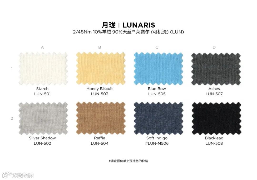 月珑,捕捉月光的静谧光辉,自带细腻且低调的光泽感。通过天丝与少量羊绒的混纺,创造出一种既精致又光彩照人的纱线。月珑是优雅晚装的绝佳之选,无需繁复设计,仅凭自身质感,便能在灯光下悄然绽放迷人光彩。以简约之姿绽放月光般的优雅。