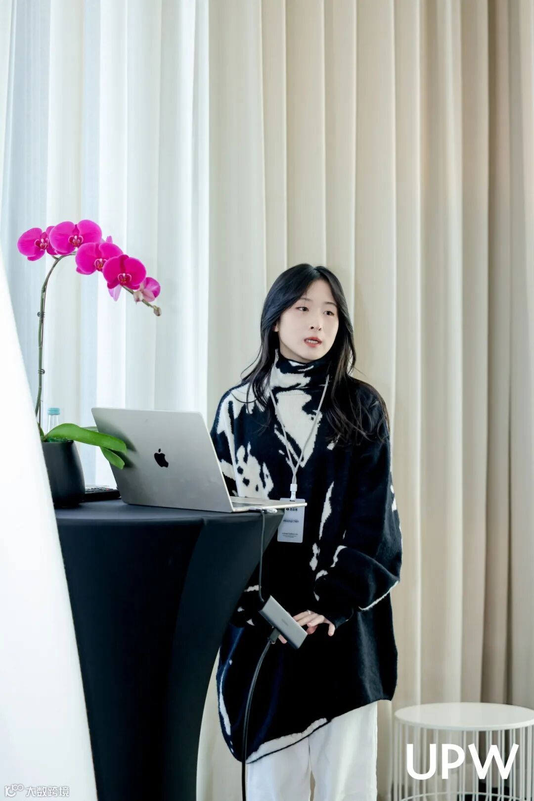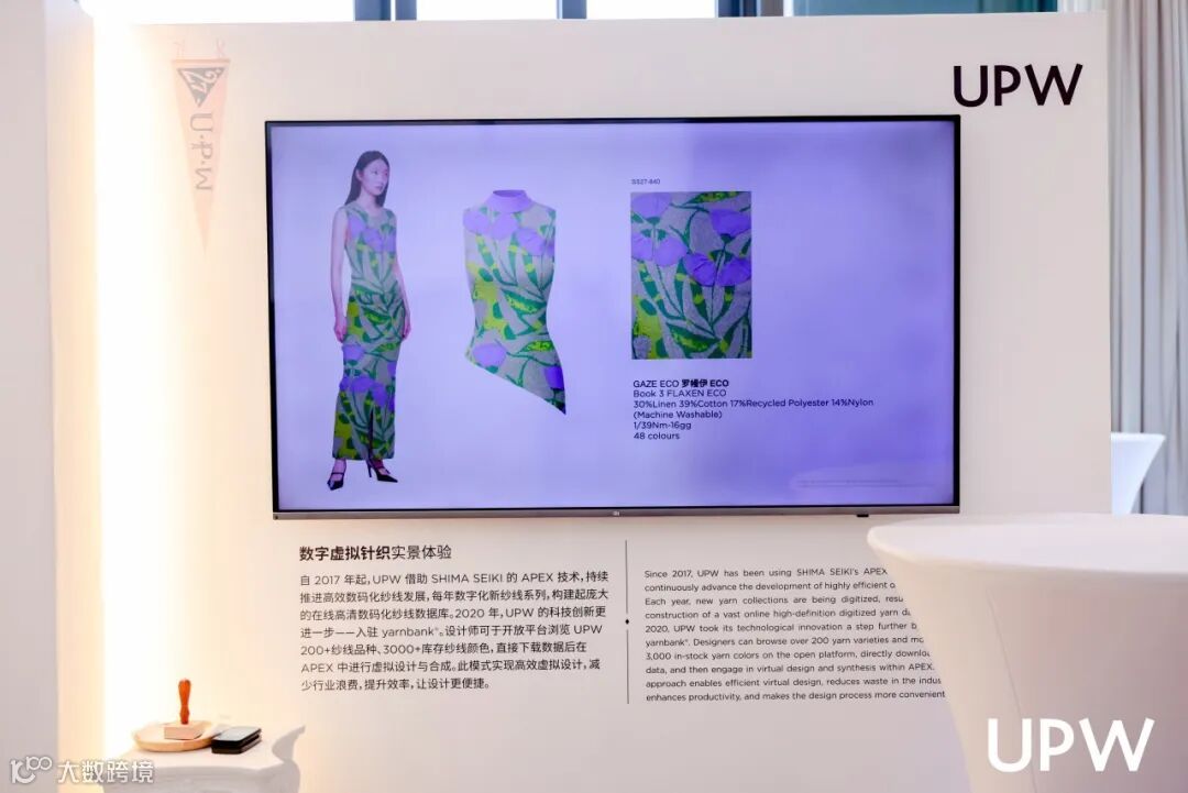 UPW 开发部的 Ava,通过 APEX 系统向来宾生动演示了 UPW 纱线在不同款式上的实际应用效果,以数字化手段直观呈现纱线从材料到成衣的演变路径,让技术语言变得可感知、可预见。
