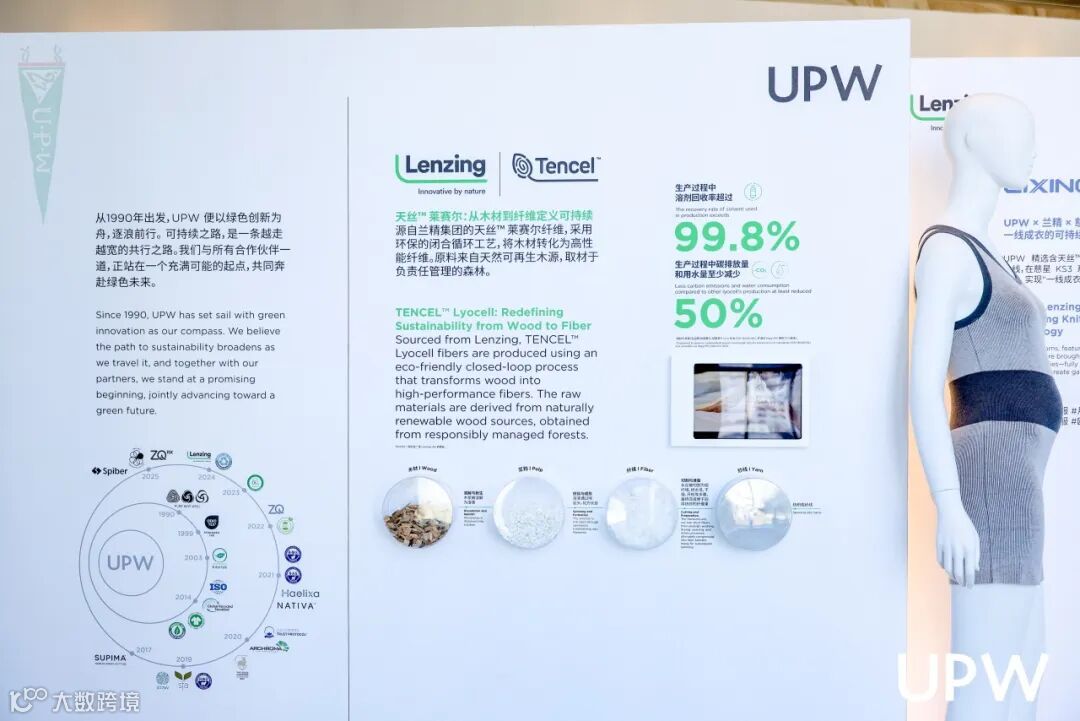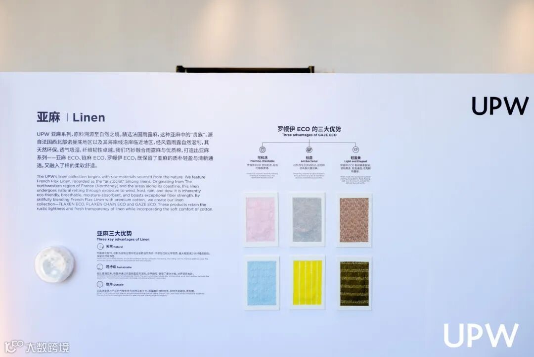 此外,我们的绿色新材料专区集中呈现了环保纤维领域的最新成果。从本季主推的棉、麻等可持续材质,到与Lenzing、BHF、思百博等国际知名纤维生产商联合开发的新型纱线,不仅与UPW新品共同演绎了纤维科技的创新图景,更在沙龙分享区通过生动直观的讲解与展示,让来宾深入感知材料背后的可持续叙事与技术突破。
