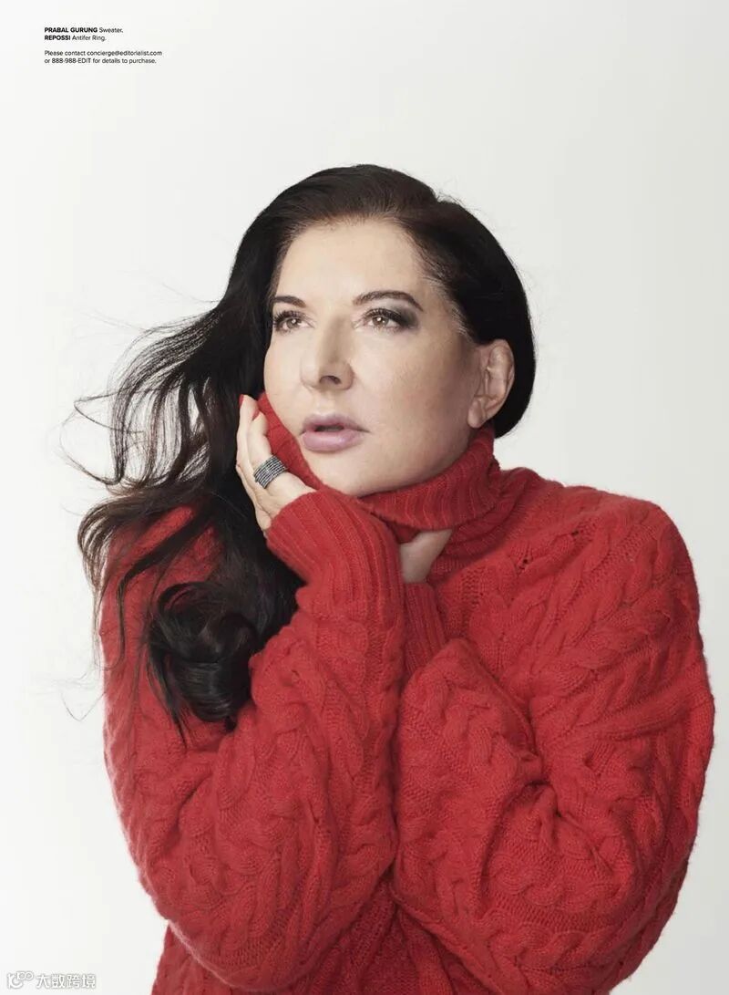 Abramović 最具代表性的形象是她的红色高领毛衣——鲜明、大胆、毫不妥协。红色在她的语境中不仅是一种颜色,更是一种态度:强烈的存在、持续的专注、压倒性的情感张力。正如她的艺术实践一样,颜色在她身上变成一种精神力量的符号。