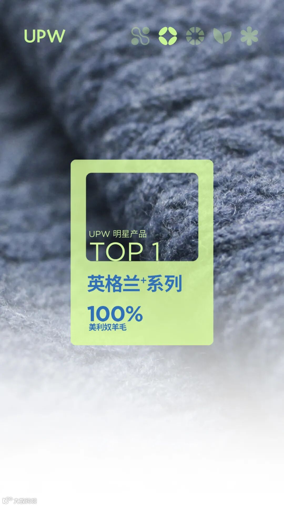 UPW® 英格兰+系列是40年来的行业口碑之作,由100%RWS 美利奴羊毛制成,经UPW® 出色的纤维染色工艺与精湛的纺纱技术打造而成,具备手感柔软、色彩丰富艳丽和品质卓越的性能特征。
