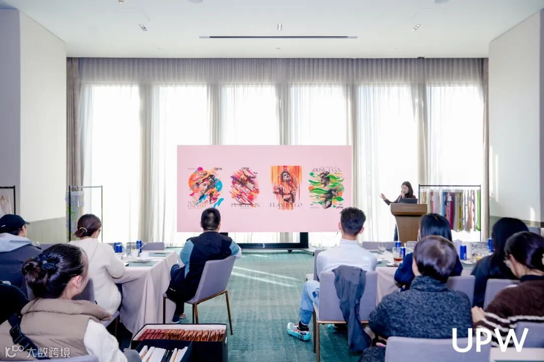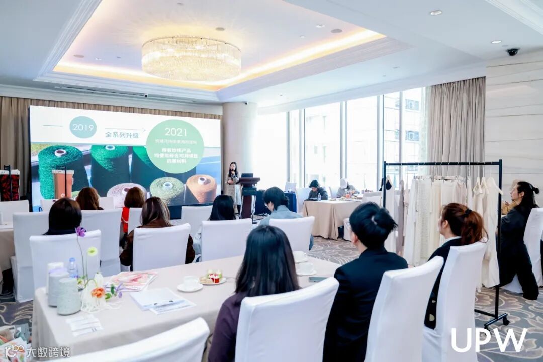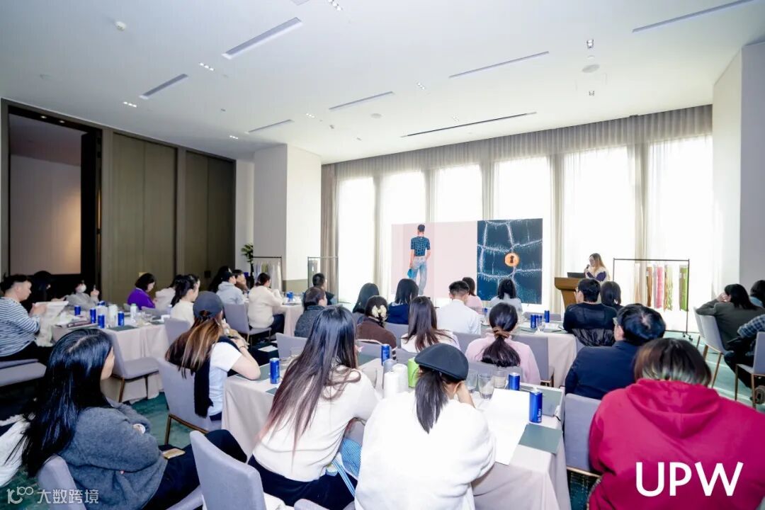 UPW® 中国区销售经理蒙慧娴和销售李丹分别向客户介绍了UPW企业理念、可持续发展战略、最新的全球材料纤维趋势数据分析/中国面料趋势报告,以及UPW春夏2027色卡设计理念,让客户通过沉浸式体验更深入了解UPW以及全球可持续趋势方向。