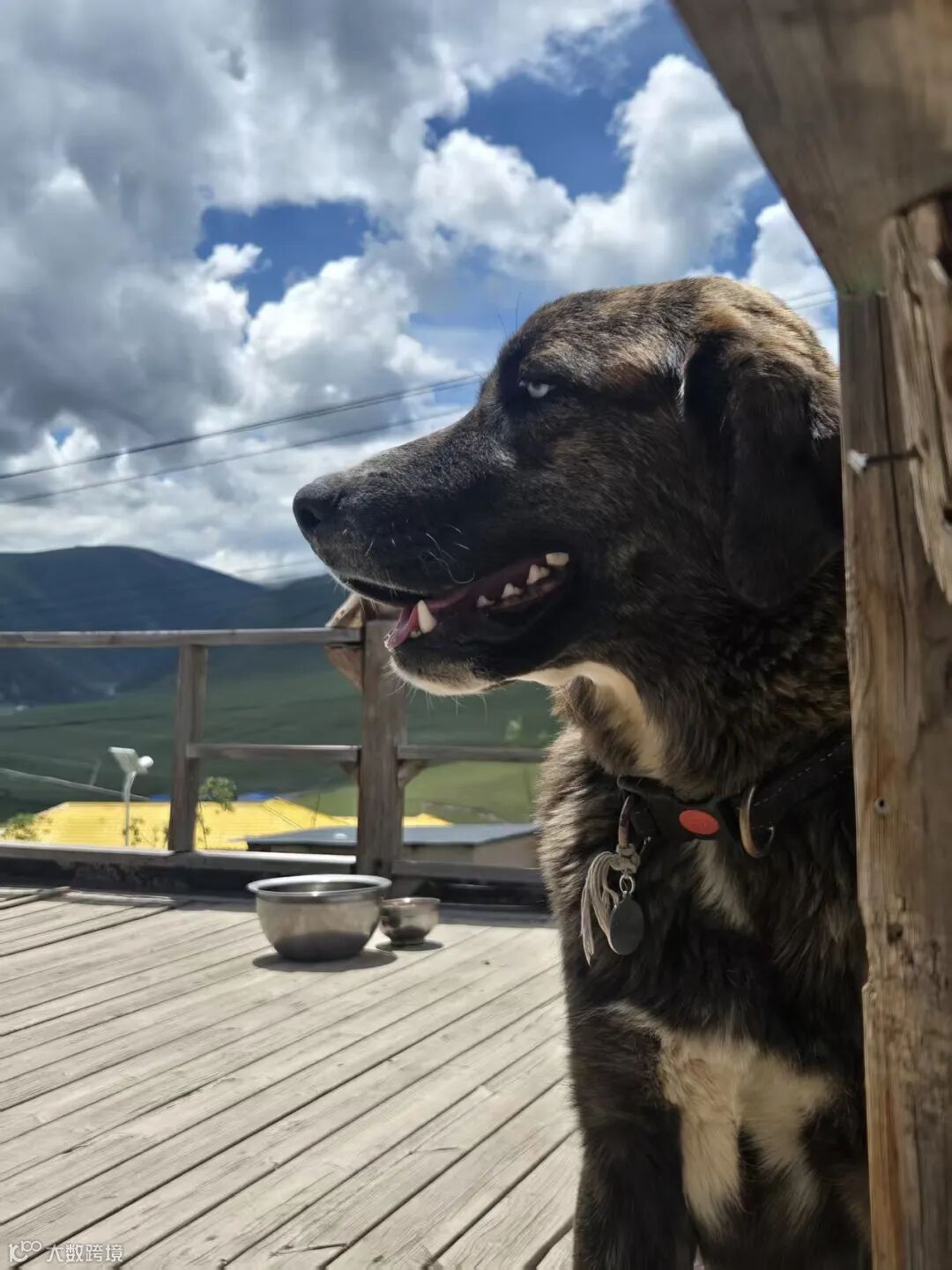 五只活泼的大型藏犬围着我们摇尾巴。这里的犬类普遍体型高大威猛,却十分亲人,藏民告诉我们因为这里相比州外的城市有很大的活动空间,动物们在山头上嬉闹奔跑毫无拘束,除了帮忙放牧还能帮忙驱赶藏马熊,世世代代的家犬与自然和人类共同守护这片雪域高原,也就自然亲密无间充满信任。
