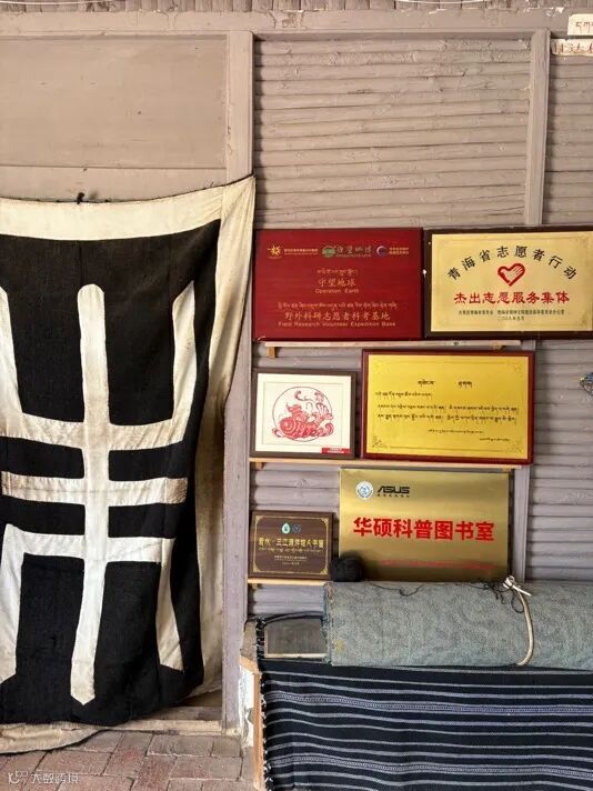 在热情的朋友们引领下,我们循着楼梯,走进了三江源保护协会。这里仿佛一个温暖的驿站,处处留存着协会多年工作的印记——那面“青海省杰出志愿者服务集体”的奖牌便是见证。透过落地玻璃窗,玉树的群山尽收眼底。时值夏季牧场繁忙时节,蓝天白云之下,广袤的绿意间,人影显得格外渺小。