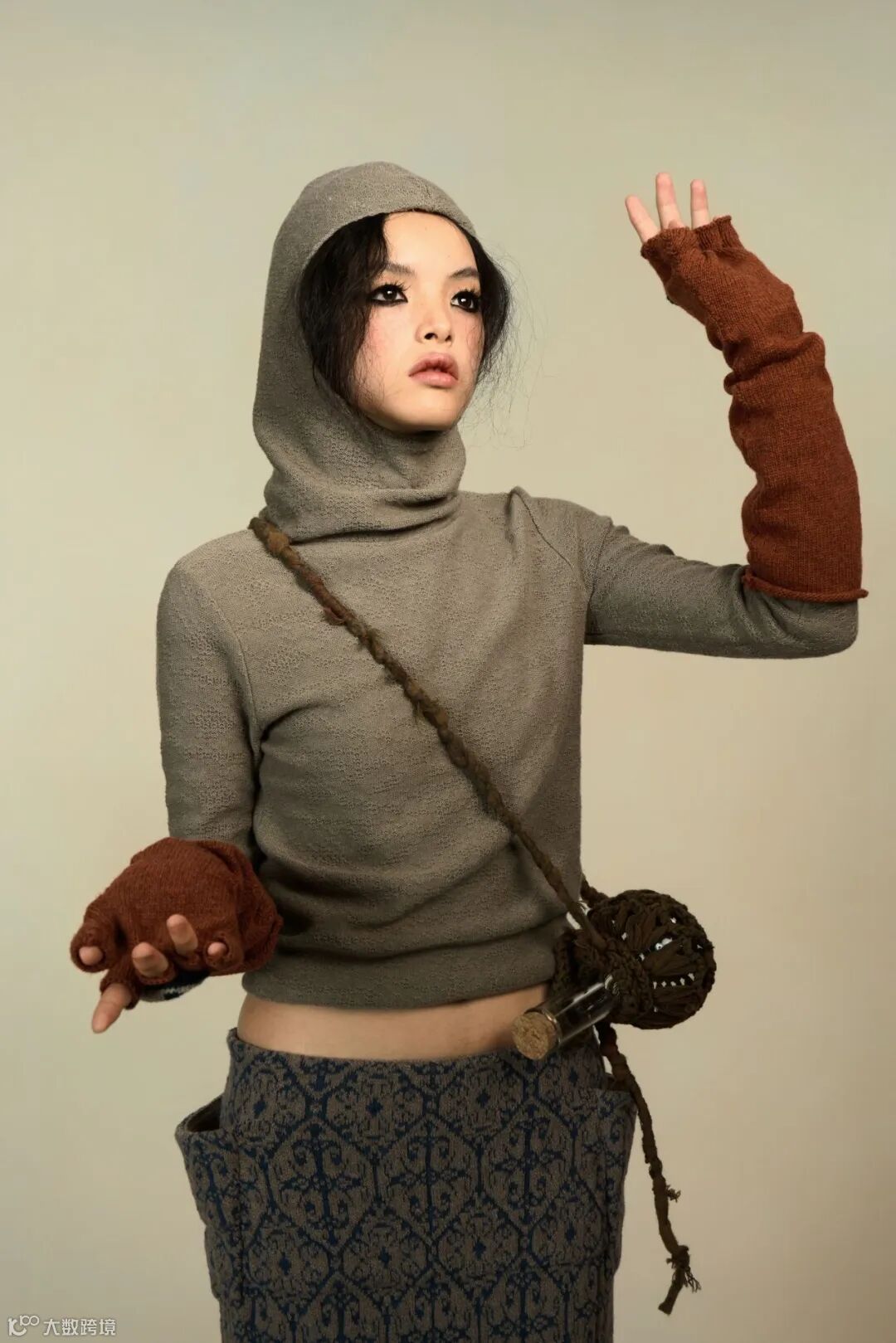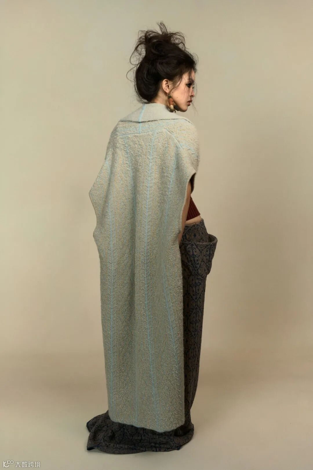 不对称的版型、刻意放大的针脚,赋予服装稚拙而诗意的质感
