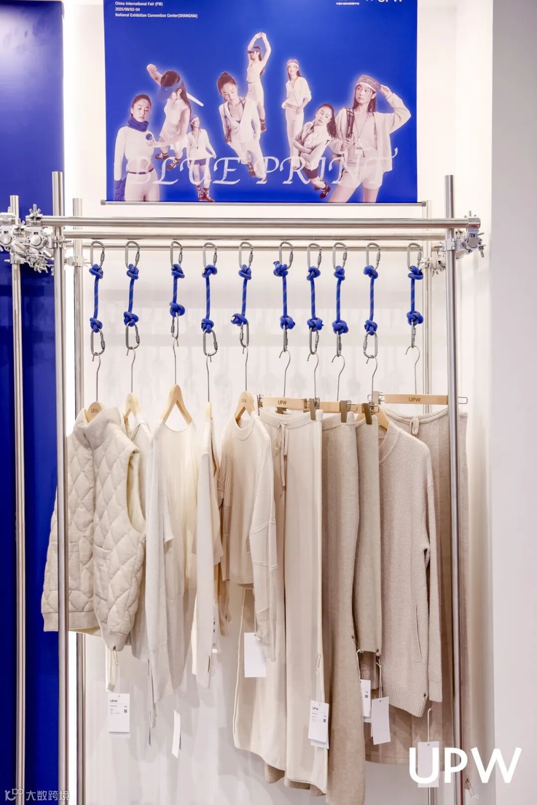在克莱因蓝色调打造的展厅中,UPW® 呈现了多元化的系列作品:灵感源自都市运动生活的 「Blue Print」 系列;与北京服装学院合作开发的横机运动系列 「转山」;以及以针织面料演绎的 「Three Acts.」。