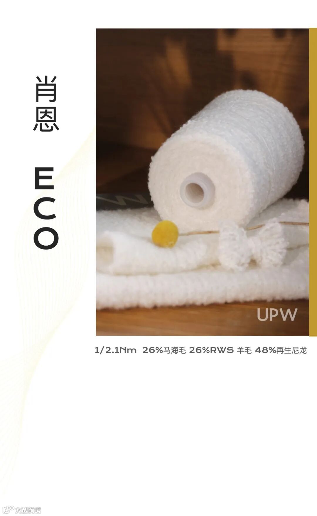 由纱线出发,时尚续暖。UPW在秋冬2025系列第20本色卡《曼妙星移》中,推出三款含马海毛纱线产品,分别是菲里辛 ECO、肖恩 ECO、云雾 ECO,这也是UPW纱线中仅有的三款含马海毛产品。