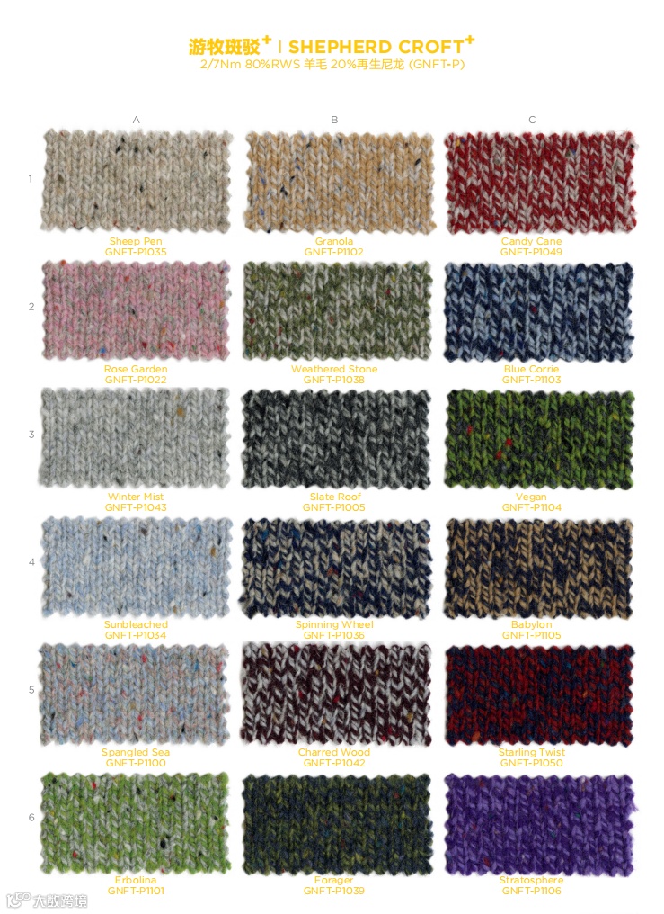 而游牧斑驳+系列纱线则在此基础撞色加捻而成