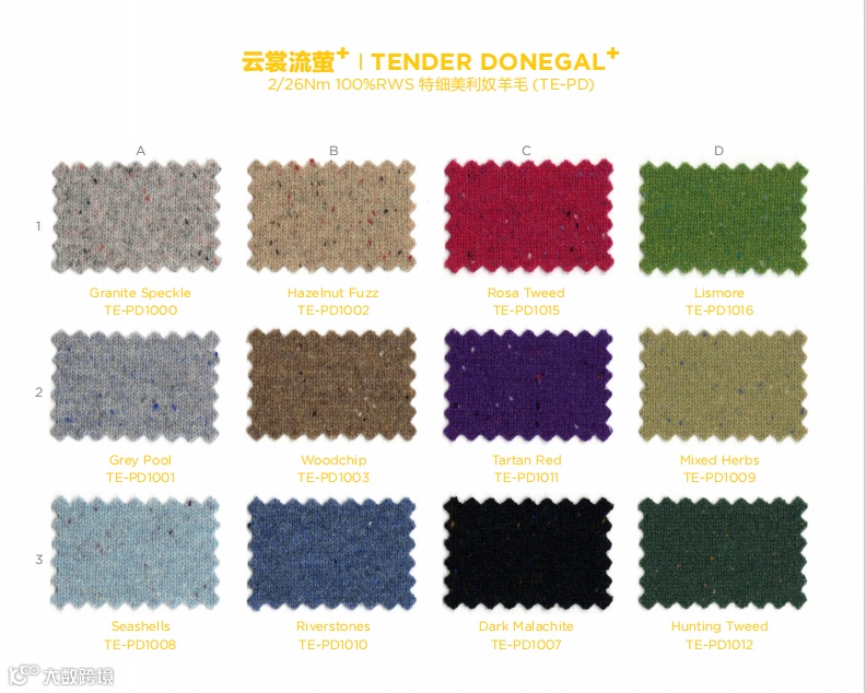 展现出色彩绚丽、彩点纷落的纯羊毛粒子纱效果