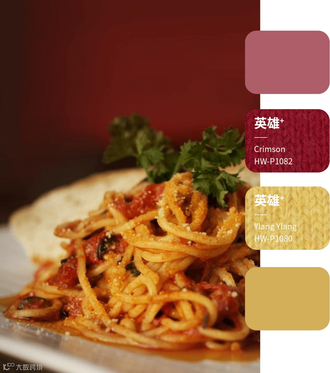UPW选用英雄+系列中高明度的显眼红黄,用RWS羊毛干爽紧致的肌理还原意面的线条感,从视觉上让人心生欢喜,食欲大增。