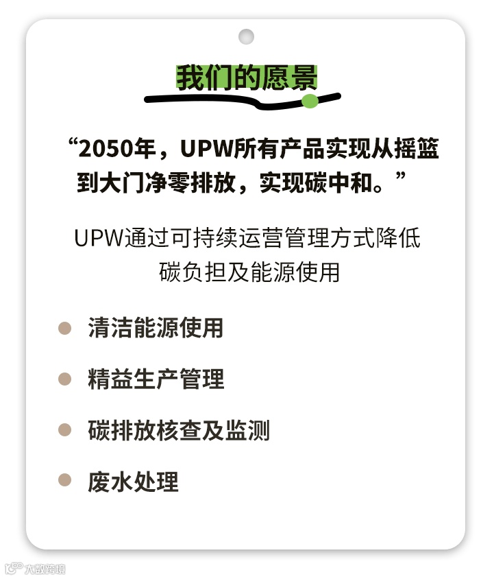 “2023年3月,6款核心系列纱线获得了 TÜV南德授予产品从摇篮到大门碳足迹认证和碳中和标签,是UPW碳中和道路上的又一个重要里程碑。”