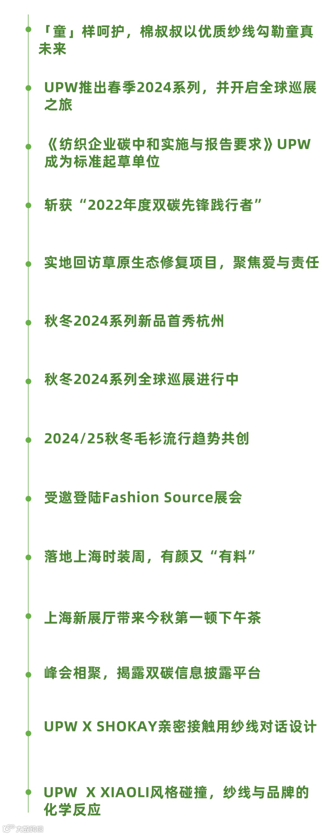 7月,UPW在意大利举办私享会,并跟随SPINEXPO进行秋冬2024系列全球巡展,在巴黎和纽约与海外新老客户如约相见,展示了灵感来源于五大灵兽的创意纱线产品和可持续发展成果。此外,UPW支持使用蚂蚁链进行供应链溯源追踪,并推出获得碳中和认证的核心系列纱线,进一步树立良好品牌价值形象。