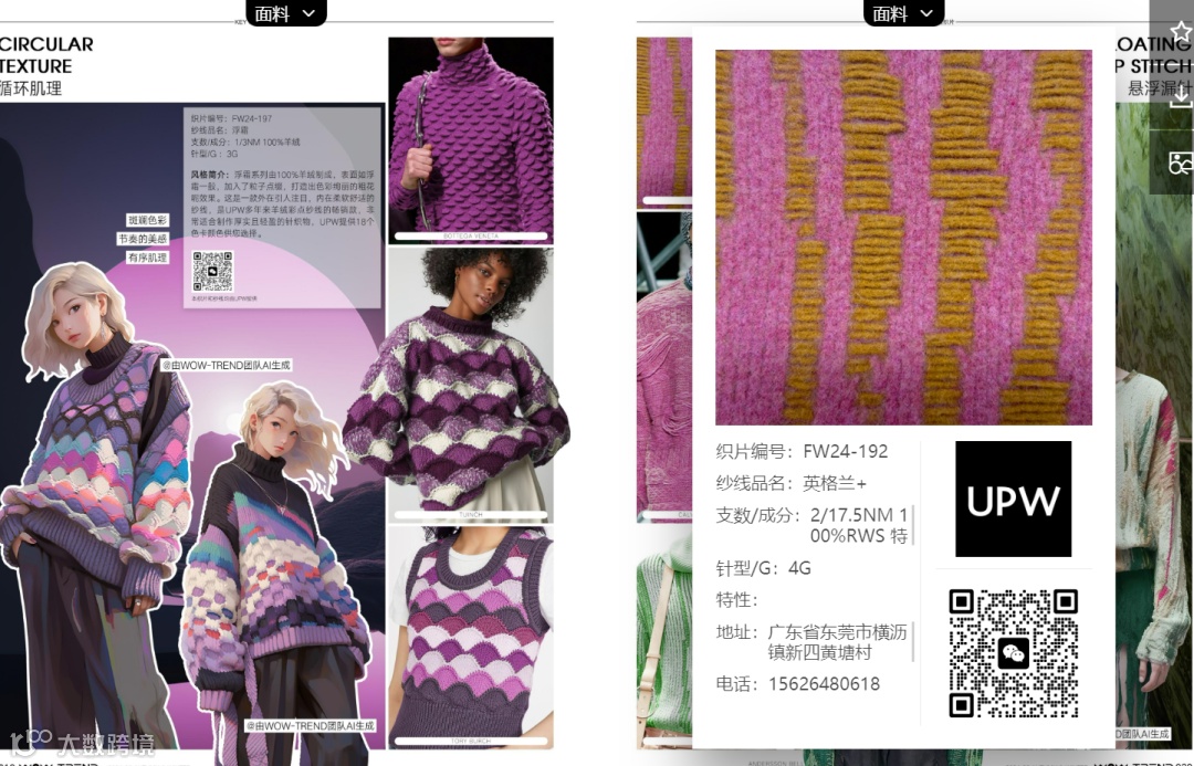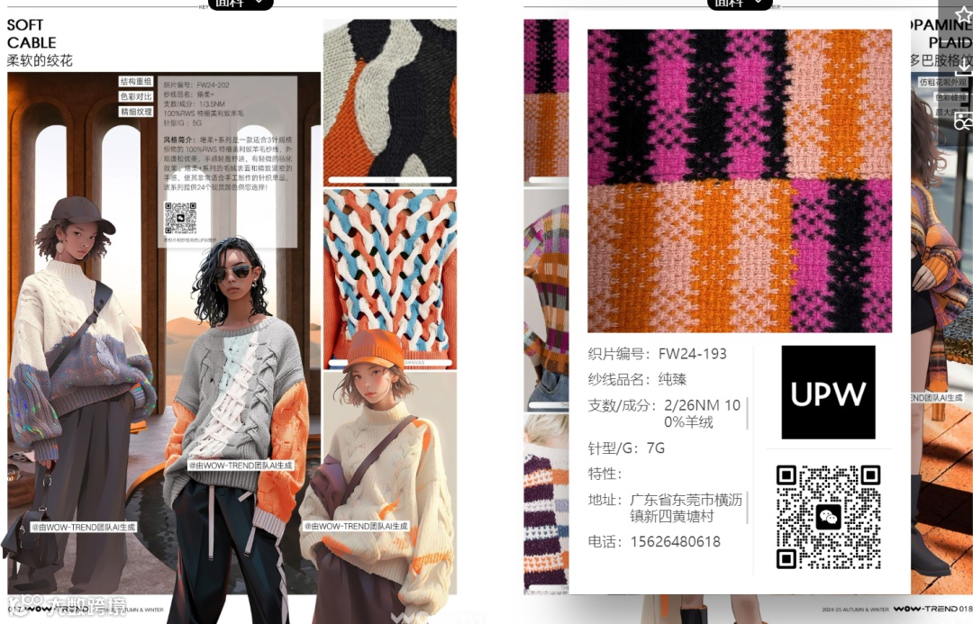 为保持足够的时尚敏感度与预判能力,UPW与趋势咨询综合服务平台WOW-TREND再度合作,前瞻发布2024/25秋冬毛衫流行趋势,视线贯穿「数据分析」「风格色盘」「关键织片」「关键色彩」等九大主题线,深入细分流行元素,帮助设计创意者与潮流先锋们更加准确地预测时尚的走向。