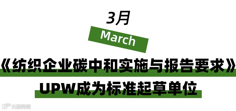 在全球走向碳中和的时代,UPW凭借其在纺织行业的领先地位,成为中国技术经济学会批准的《纺织企业碳中和实施与报告要求》标准起草单位,这是UPW在纺织行业全面践行可持续发展规划并获得业内高度认可的证明,也见证了UPW将社会责任感肩扛于顶,助力碳中和目标达成的坚定决心。