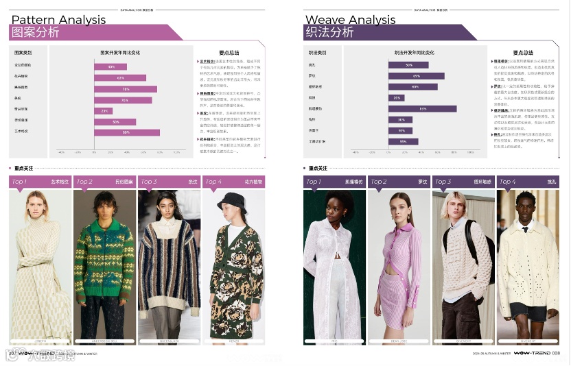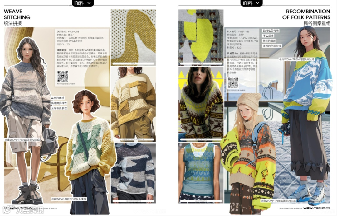 更多关于2024/25秋冬毛衫流行趋势发布的介绍,包括「关键廓形」「关键纱线」「关键图案」「关键细节」「关键针法」,可通过WOW-TEND热点趋势官网趋势书籍板块查看。