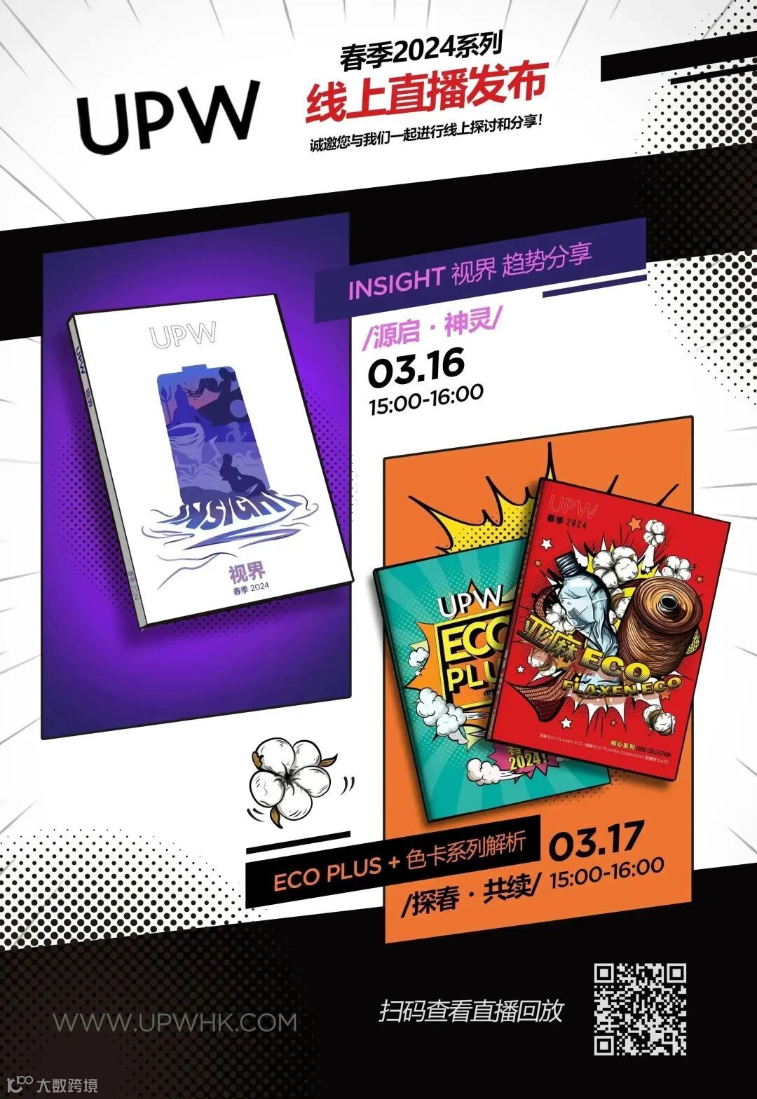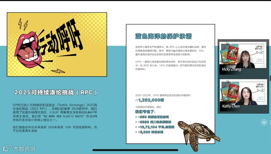 3月16日-17日,UPW「云」发布了春季2024新品系列,重点释出了本季发布的两大核心部分——INSIGHT视界潮流趋势和ECO PLUS认证系列&色卡解析,以专业性和代入感,打破全球专业用户的物理边界,带领大家沉浸式体验全新系列的魅力。
