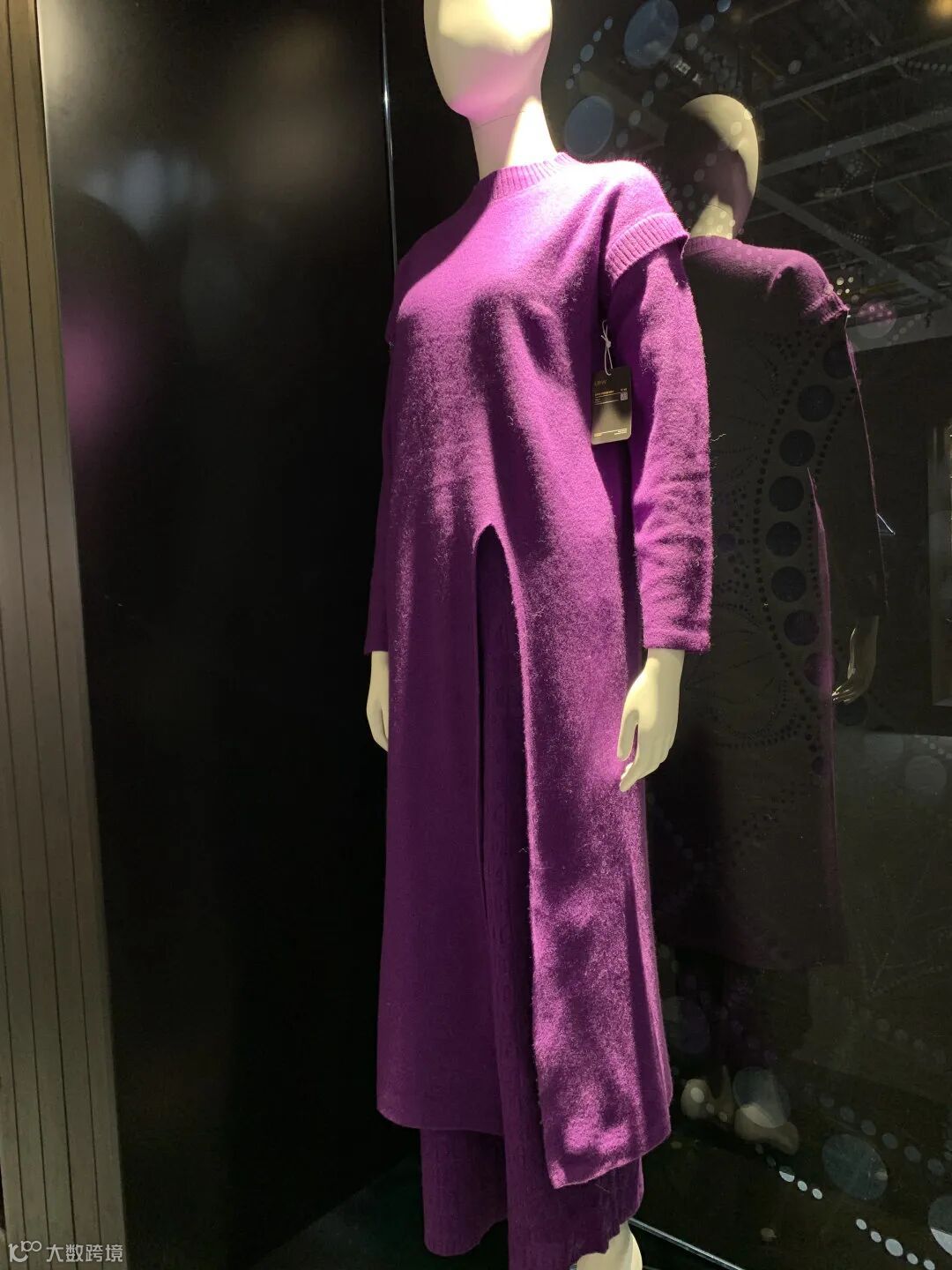 充满异域风情的紫色针织成衣——奥拉+轻微的毡毛质感,在扭绳织法的处理下,整体造型呈现出更具立体感的效果,高贵的紫色则赋予了其典雅气质。