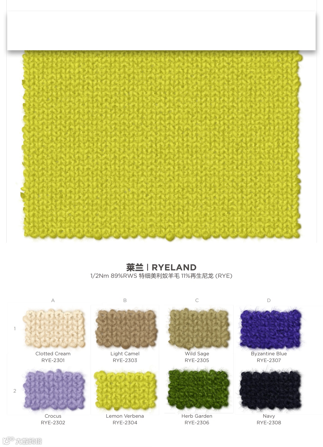 莱兰系列由89%优质RWS特细美利奴羊毛和11%尼龙制作而成,精确的比列搭配加上1/2Nm织数,使得纱线拥有了独特的不规则外观效果,非常适合在严冬里搭配慵懒风格的针织品。