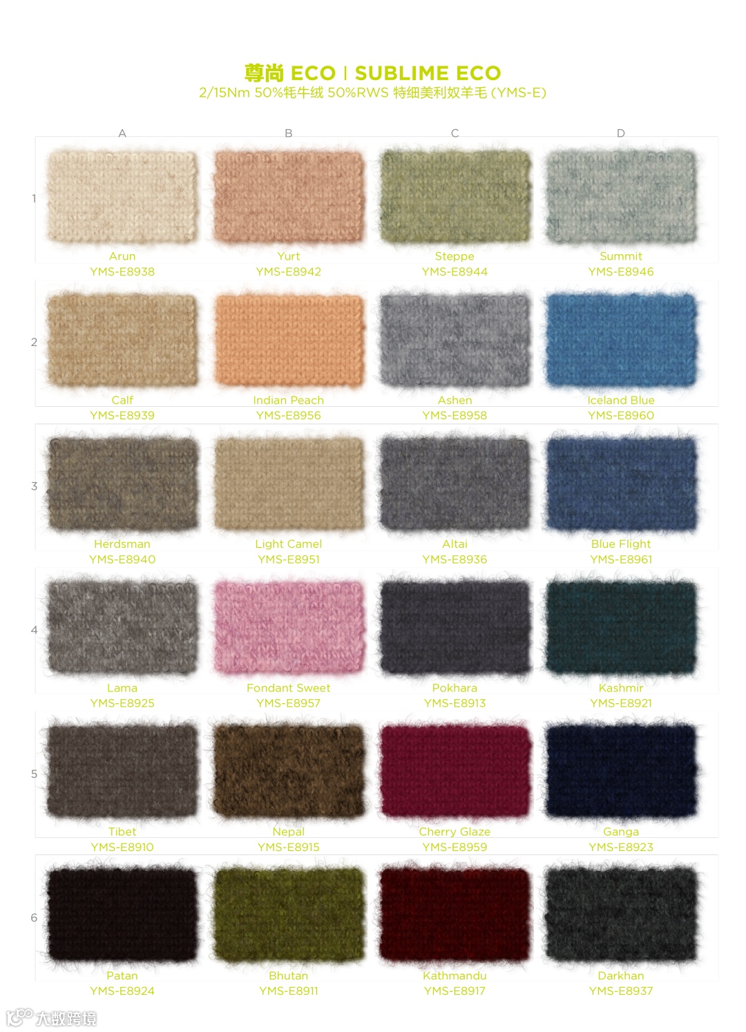 缱绻 ECO系列采用牦牛绒、RWS特细美利奴羊毛纤维和优质棉花混纺且加捻制成,在不损伤天然绒毛本身舒适质感的同时,打造出复杂巧妙的褶皱外观效果与细腻光泽。更接近自然的纯粹色彩,呈现天然材质的朴素美感,让织物与秋冬的相处更为自在。缱绻 ECO系列纱线本身轻盈细软,手感滑糯,轻放于掌心,仿佛捧着藏原碧空上的绵云;织成衣物,透气蓬松却体贴细腻,温暖似沐浴在春阳微风中,贮藏妙不可言的体验感,是秋冬精致高级织物的优质选择。