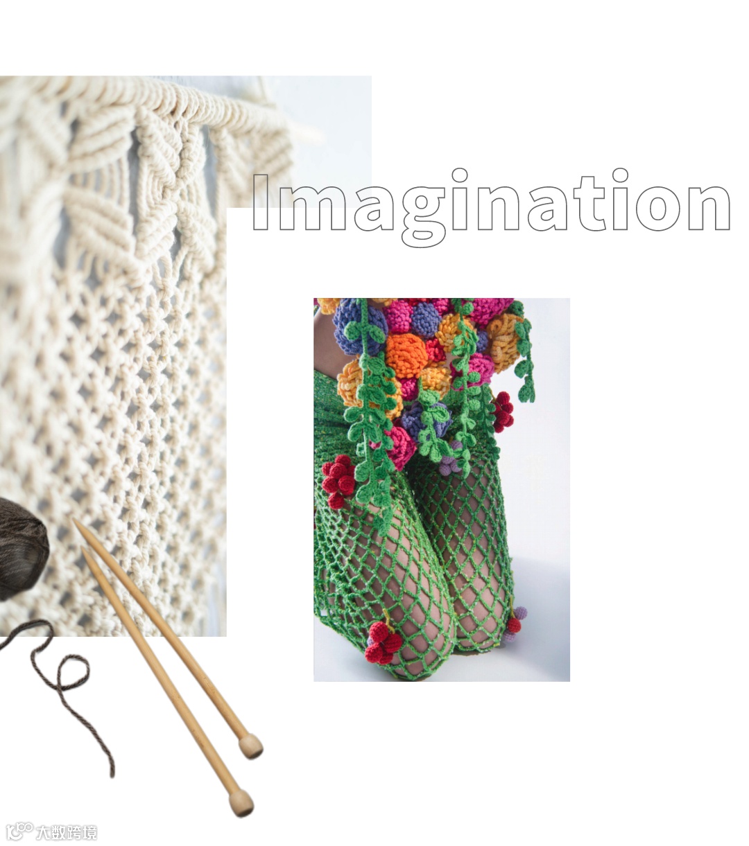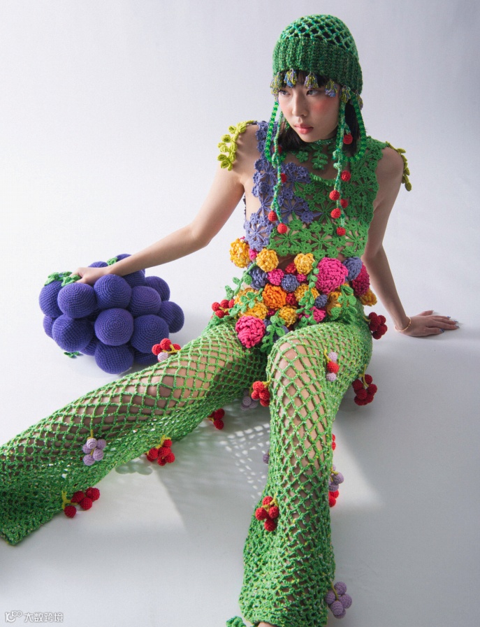 在Dairu Ren的设计作品中,可以看到纱线是视觉的绝对主导。甄选纱线无法比拟的柔软质感,不仅在大面积的应用上不落俗套,在创作空间的延展性上也一次次打破原有预期,精巧地放大了设计表达中的特点,突出主体,加强故事性,让思考和灵感从视觉辐射至身体各个感官。