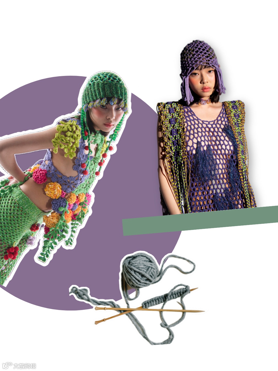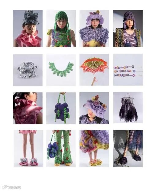不管怎样,设计作品在视觉呈现方面,元素与主题的统一至关重要。时装设计是设计师情绪外放的表达,纱线材质的选择则是放大和接收这些情绪的通道和载体。斑斓亮眼的冲击色彩,繁复重叠的编织纹路,触感清晰的肌理组织,在一丝一线的穿插之中,纱线的内生力量被强烈唤醒,设计的视觉印象被进一步加强,为我们带来更加刺激新鲜的观感。